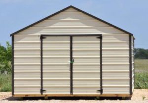 are shown below that offer great storage space at a great price, sturdy portable building with 2 x 4 studs, 29 gauge metal siding and roof, 2 x 4 floor joists set into notched skids, 5/8 inch flooring with Pro-Struct flooring from Louisiana-Pacific, treated with their Smart Finish coating.